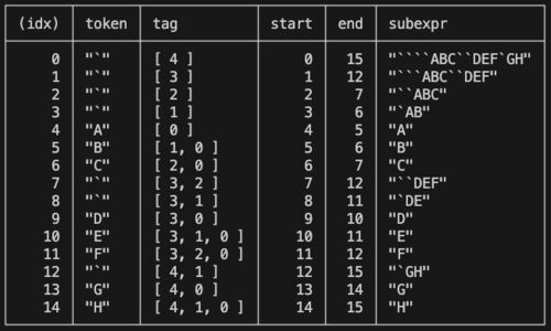 ラムダ式に含まれる全ての部分式に一意かつ列挙可能なタグを付与する方法について考察する。 導入 例として次のラムダ式について考える。 ````ABC``DEF`GH この式を二分木で書くと以下のようになる。 graph TB; a1((app))---a2((app)) a2((app))---a3((app))…